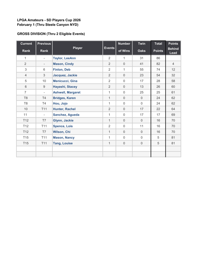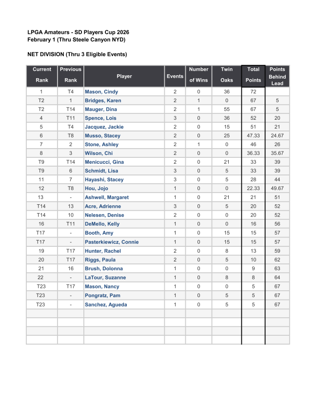 Weekly eBlast: Read Our Latest Chapter News2026 Players Cup Standings: